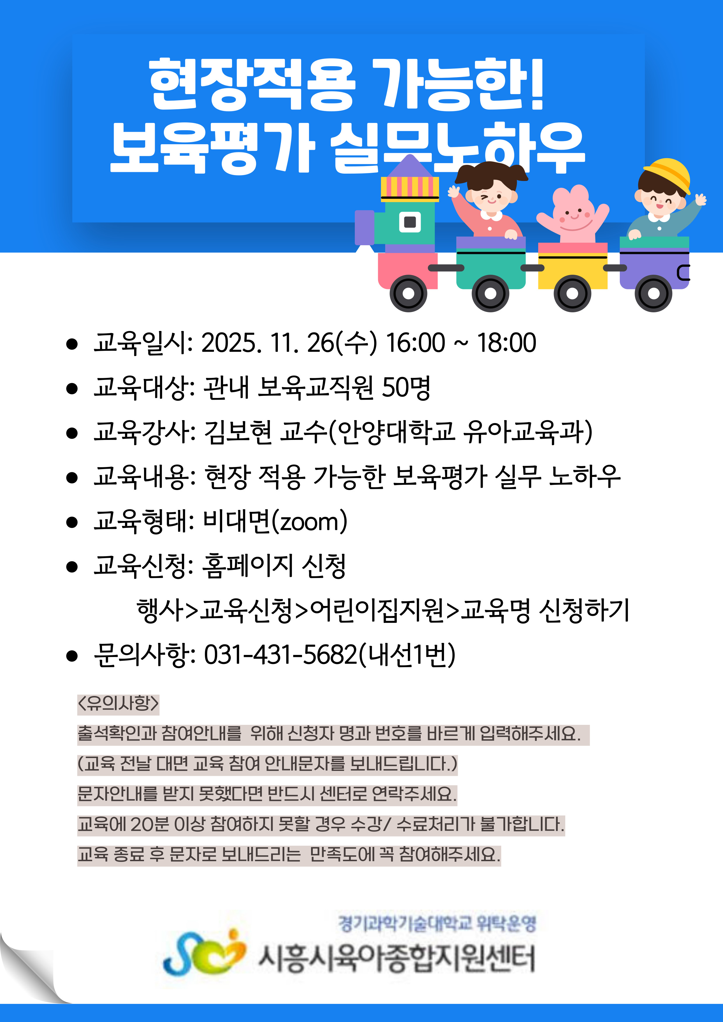 교육일시 및 장소를 반드시 확인하시어 교육 당일 시작 10분 전까지 교육 장소에 입실해주시기 바랍니다.
