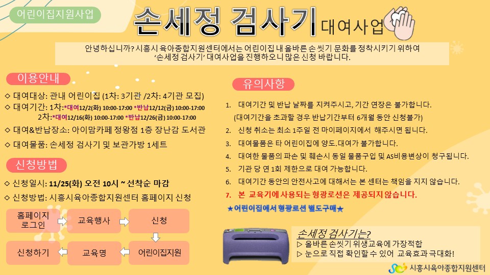 손세정기 대여기간 [대여: 12.2(화)10시 ~ 반납: 12.12.(금)17시 까지]