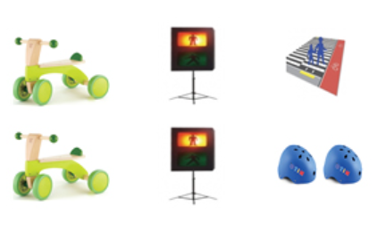 | 보행 신호등 2대, 횡단보도 매트 1개, 영아용 하페 네발 자전거 2대, 헬맷 2개 |