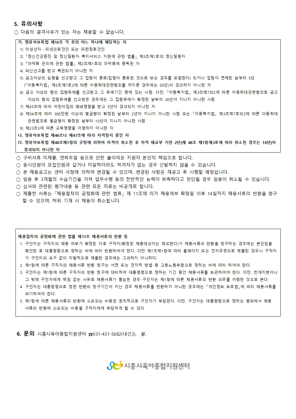 [센터] [채용]시흥시육아종합지원센터 직원 채용(놀이지도사)
