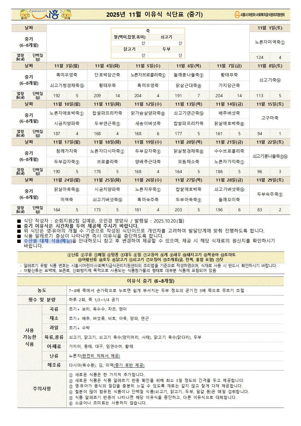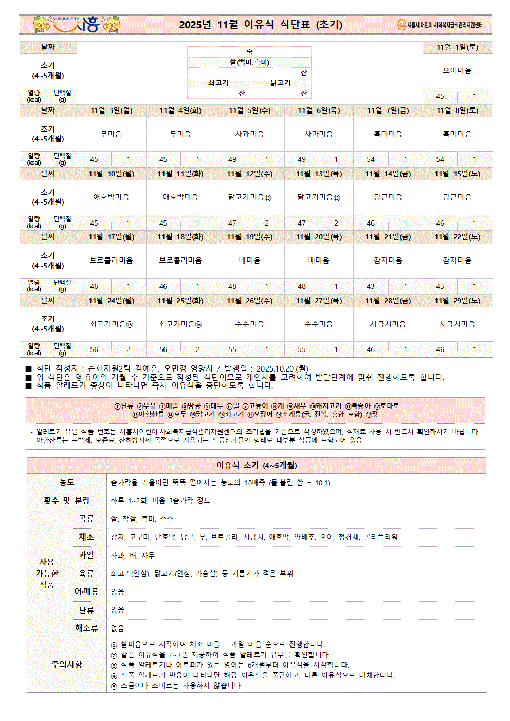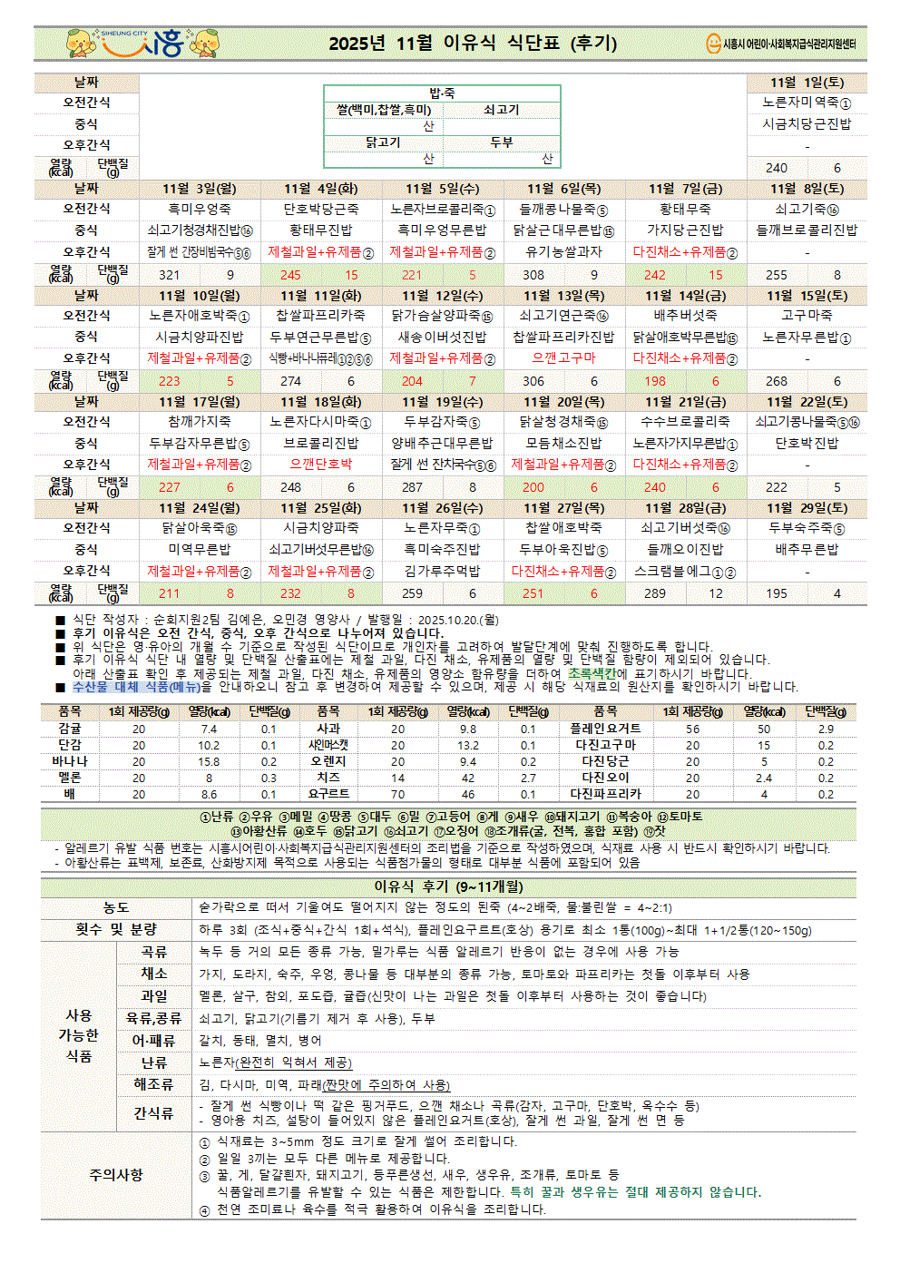 [2025년 11월] 이유식 식단표(초·중·후기).hwp
