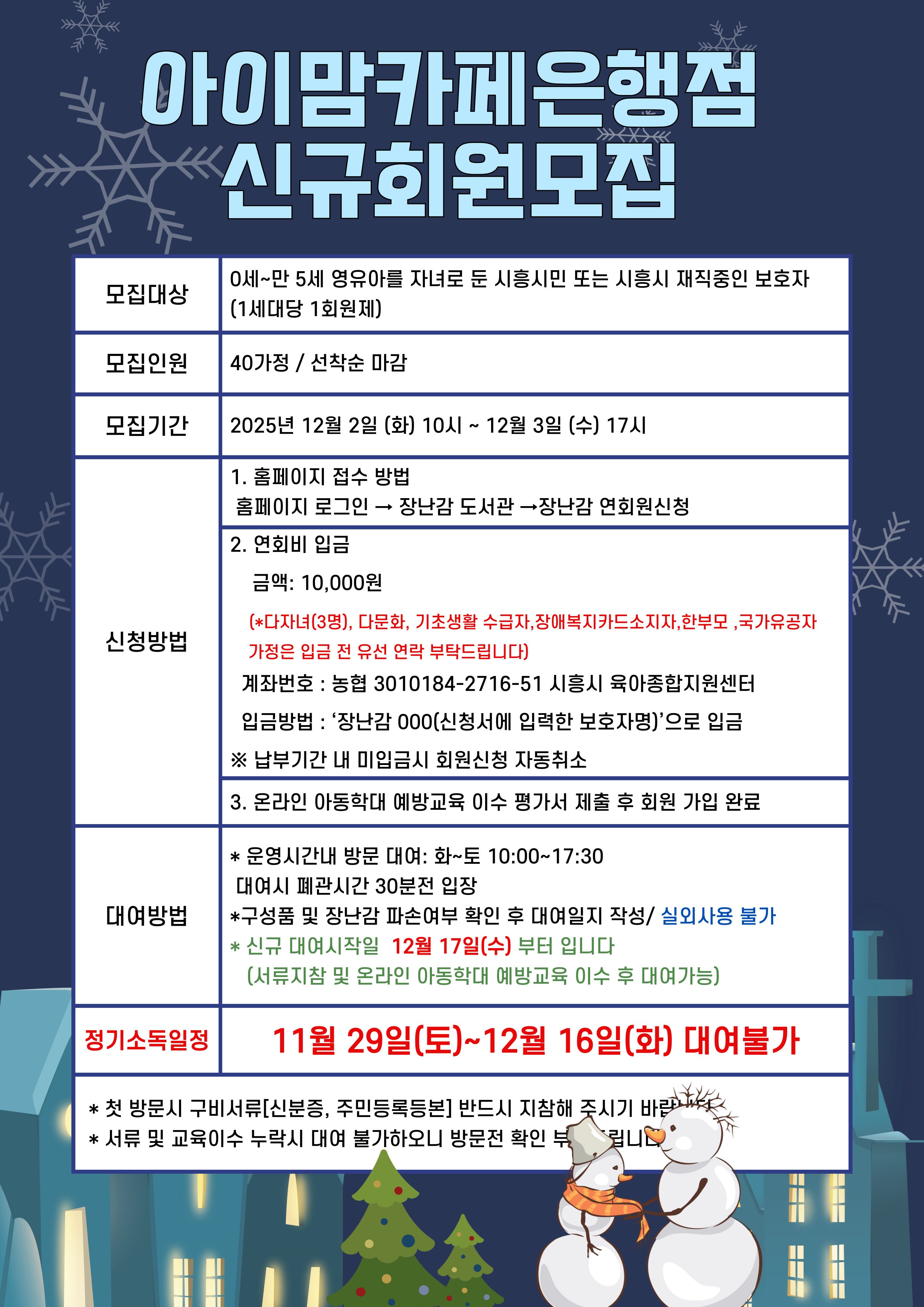 [은행점] 2025년 12월 장난감도서관 연회원 신규모집