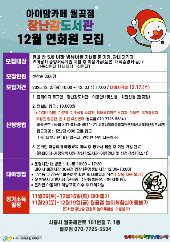 [월곶점] 2025년 12월 장난감도서관 연회원 신규모집