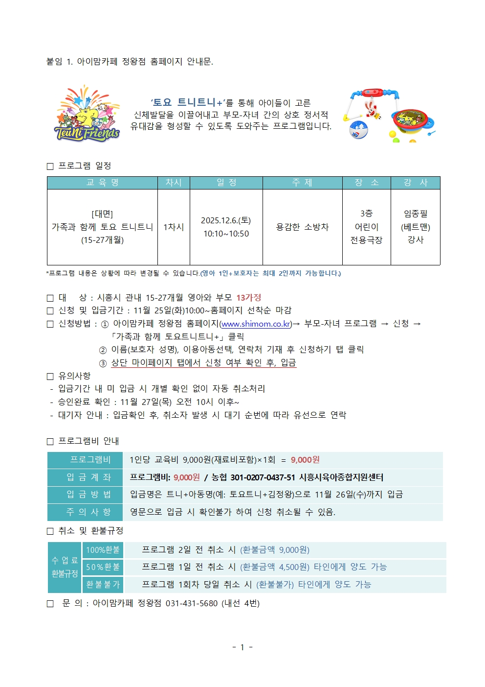 2. 프로그램 대상 개월수에 맞게 신청 부탁드리며 본 프로그램은 아이1명당 부모 2인 참여가능 합니다.