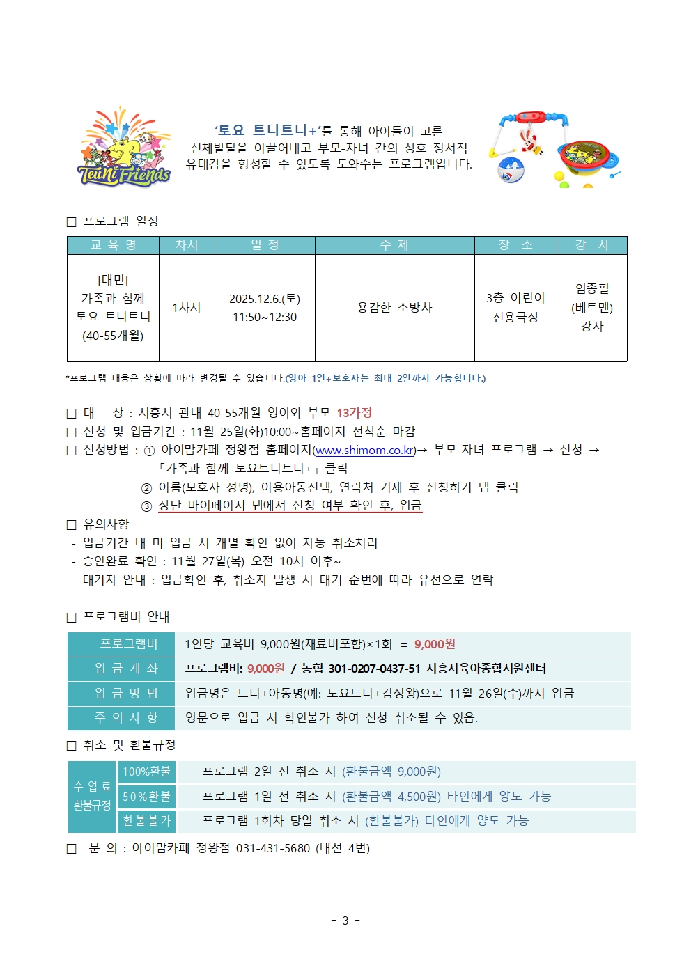 주말12월 6일(토) 가족과 함께 토요트니 (40-55개월)