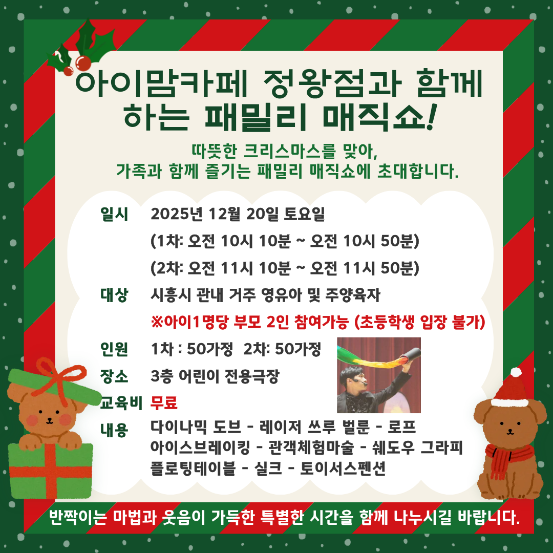 12월 20일(토)크리스마스공연 - 산타의 매직 크리스마스 '패밀리 매직쇼!' (2차 11:10~11:50)