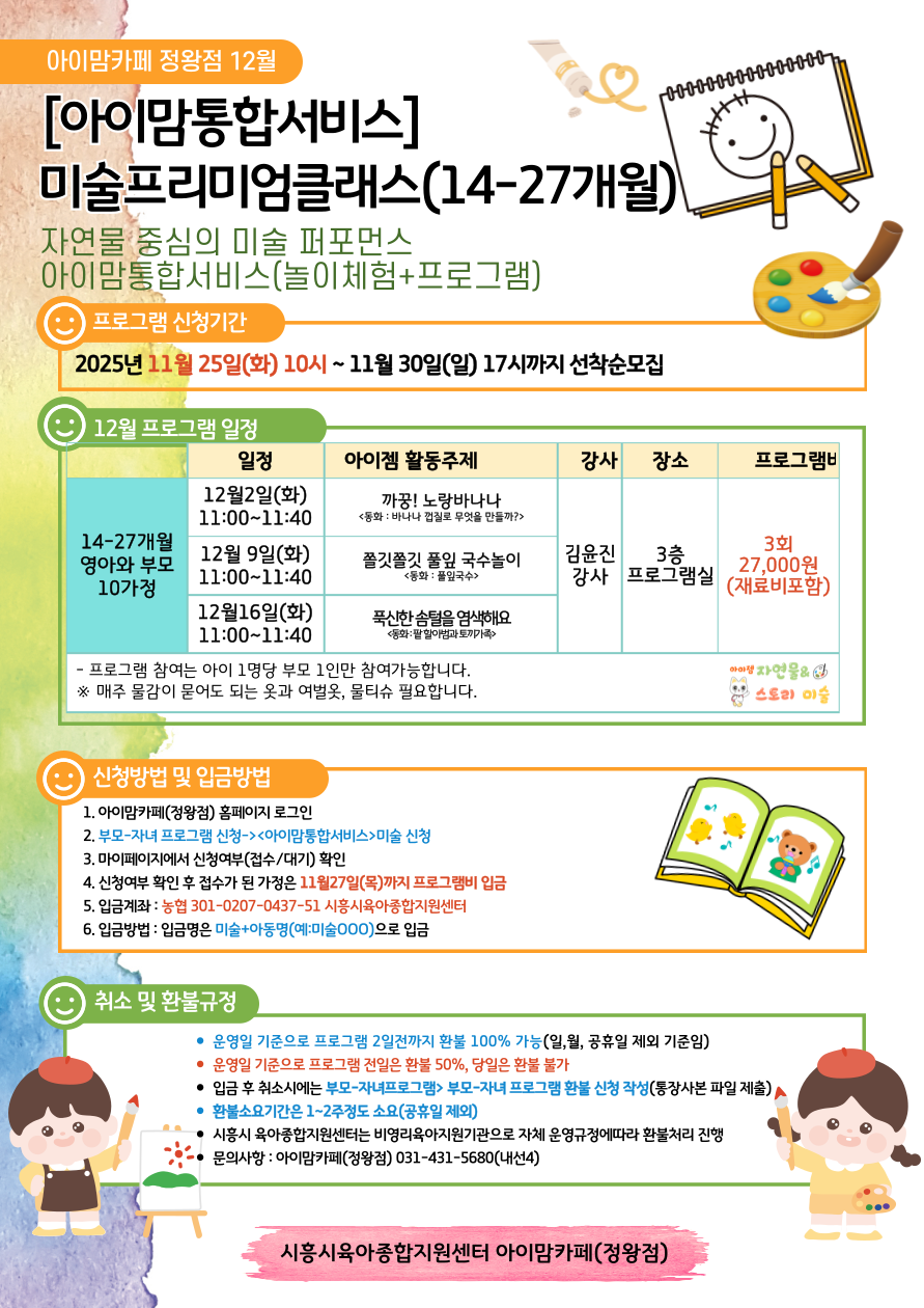 12월 2,9,16(화)오전아이맘통합서비스-미술프리미엄클래스(14-27개월)